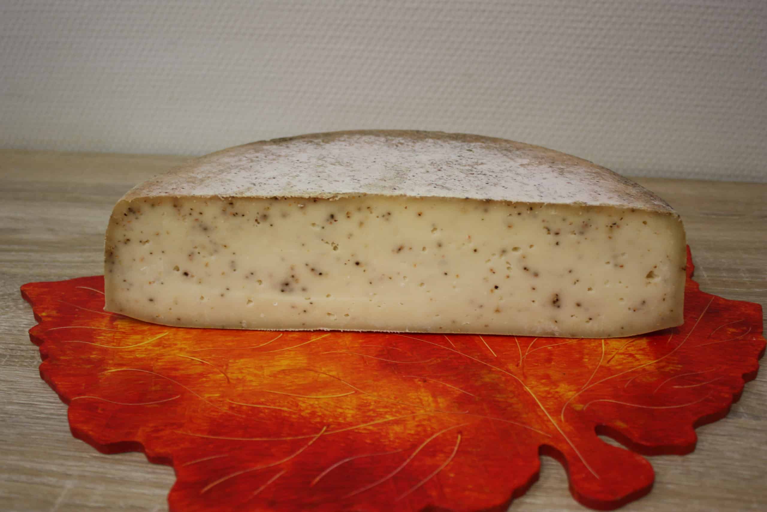 Ses grains de poivre finement intégrés au fromage libèrent, à la fonte, un parfum délicat et une chaleur subtile en bouche.